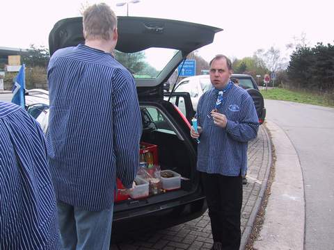 Morgens um 10.15 Uhr wurde ich bei IKEA Bremen von unserem Vize Holger abgeholt. An der Raststätte Dammer Berge haben wir uns zu einer kleinen Brotzeit, mit der man eine ganze Kompanie hätte verpflegen können, mit den anderen getroffen. |