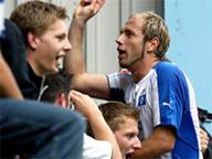 nicht nur mitfeierte, sondern auch die Fangesänge anstimmte... |