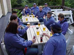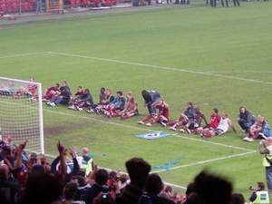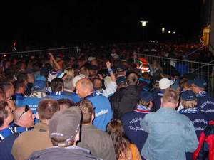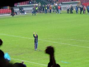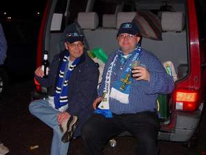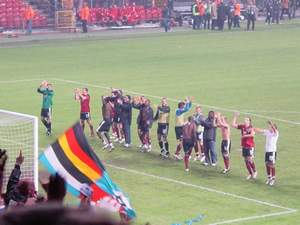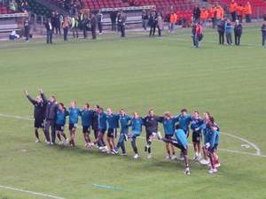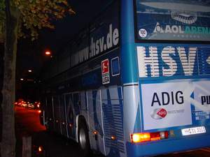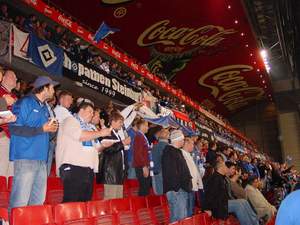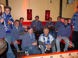Zum Stichwort „Einnicken“ fällt mit noch spontan jemand ein: Gladi ! „Ich war nur mal eben eingedöst.“ Aber eins muß man Gladi lassen, er hat den HSV nie aufgegeben und immer gesagt, das Spiel gewinnen wir noch. Zusammenfassend kann ich sagen, dass es eine „geile“ Ausfahrt war trotz der Strapazen der langen Hin- und Rückfahrt von 760 km, wir waren alle 24 Stunden auf den Beinen, glaube ich ! Aber so schnell möchte ich nicht wieder in das bunker-ähnliche Stadion „Parken“. Von Innen und Außen mag es vielleicht schön aussehen, aber was einem dort beim Einlaß widerfahren ist und wie es in den Katakomben aussieht, lässt doch sehr zu wünschen übrig. Hut ab !!! : Birger, Iris, Piet, Gladi, Wolfgang, Philip, Andreas, Harald, Thomas, Gabi, Stephan und Claudia ! Auf geht’s HSV, weiter nach Europa !!!! Steffi |