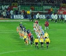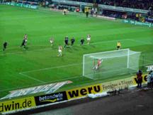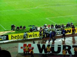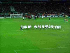 Die Hauptakteure des Spiel laufen übrigens durch einen Zugang dirket in der Fankurve der Bremer ins Rund und nicht von der Seite, wie bei uns.