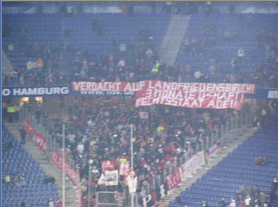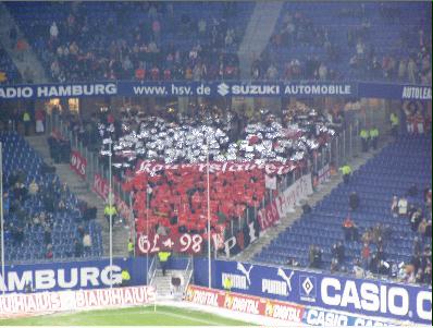 Hier noch zwei Bilder der treuen Lauterner Fans. Für ein Sonntagspiel haben doch einige den weiten Weg aus der Pfalz nach Hamburg auf sich genommen. Danke für die Punkte, die ihr uns mitgebracht habt. Hoffentlich war die Bahn so vorausschauend, dass auch der Sonderzug die 75 Minuten Spielverzögerung mitgemacht hat und alle wieder gut zu Hause angekommen sind.