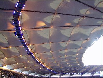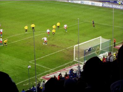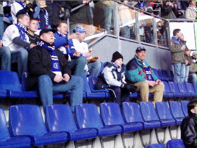 Kurz vor dem Spiel im Stadion, sind noch nicht viele da. Die meisten unserer Plätze sind noch verwaist, da alle im "Zuschauerstau" vor den Eingängen stehen. |