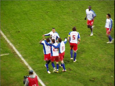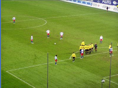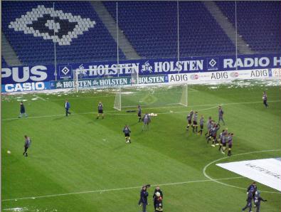 Ailtons Comeback nach seinem Kieferbruch. Seine erste Aktion, war ja klar, ein Abseitspfiff. Aber er wird bestimmt noch einige entscheidende Tore für unsren HSV erzielen können. Heute blieb für ihn nur die Beteiligung an der Siegprämie und kein Torjubel. |