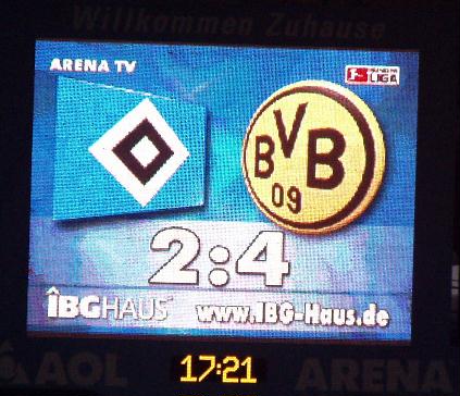 Die Meisterschaftshoffnungen sind weg, obwohl ein großer Jubel am heutigen Tage das weite Rund der AOL-Arena aufkam, als war das Zwischenergebnis aus Duisburg angezeigt wurde als die Bayern 0:1 zurücklagen. Das Tor von Ailton macht Hoffnung und Lust auf mehr. Als Toni hineinkam, kam auch mehr Zug ins Angriffsspiel. Kurios war nur, dass das 2:1 für den HSV nicht einmal an den Anzeigetafeln zu sehen waren. Mitten im Jubel über die Führung kam postwendend das 2:2.