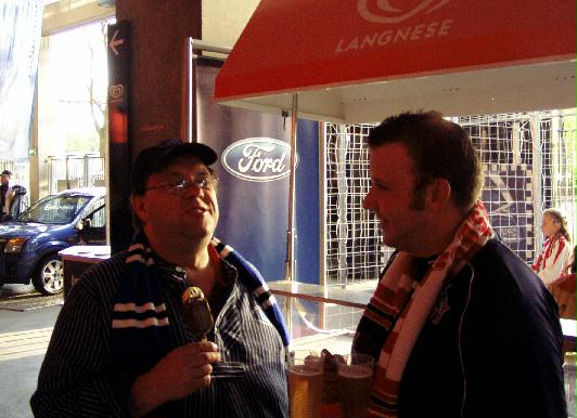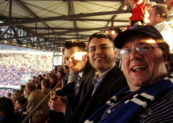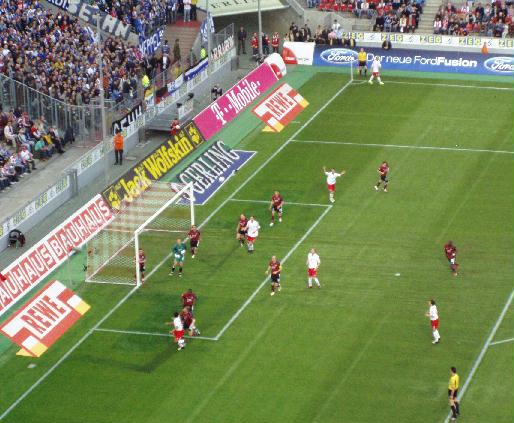 Sagte doch ein Kölner der hinter mir am Fanshop stand: "Was macht eigentlich der Hamburger hier?" Antwort: "Hamburg steht halt immer vorne!" Und dann in der Straßenbahn verabschiedete sich ein Kölnfan von uns: "Tschüß, kommt gut wieder in euer Dorf!" Unsere Antwort: "Wer ist hier das Dorf? Hamburg benötigt wenigstens nicht eine Eingemeindung nach der anderen um Millionenstadt zu sein!" Er konnte sich sein Lachen nicht Verkneifen... |