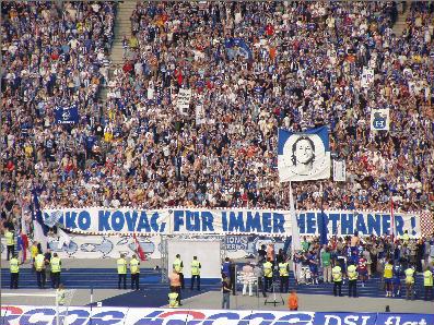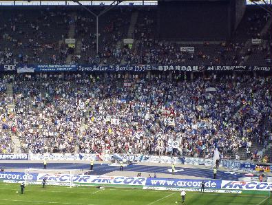 Die Südkurve, Heimat der Herthafans. | FC Hein Blöd, ein nicht so passender Name für einen Fanclub |