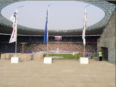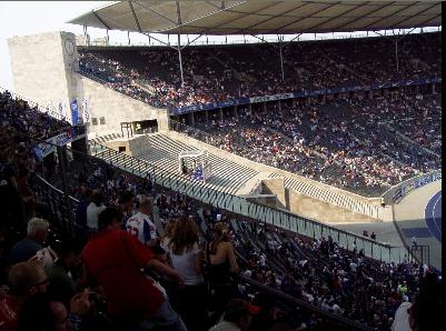 Das Olympiastadion zu Berlin. man hat schon gemerkt, dass es seit 1936 nicht großartig verändert worden ist. Wenn man bedenkt, wie viel Aufwand für die Fußball-WM 2006 getrieben wird, kann sich der normale Fußballfan nur an den Kopf fassen, das diese total veraltete Schüssel mit Tartanbahn in diesem Jahr das Endspiel um die WM erleben wird. Nur weil es Berlin, die Hauptstadt Deutschlands, ist, muss noch lange nicht in so einem Teil die WM zu Ende gehen. Kein gutes Aushangschild für Deutschland und nur der Politik geschuldet, dass dort gespielt wird. Wenn man da an moderne Fußballarenen denkt: Dortmund, München, Frankfurt, Hamburg, Köln,... ...jede dieser Arenen ist besser als diese mit einem Dach aufgepeppte Uraltsportstätte.