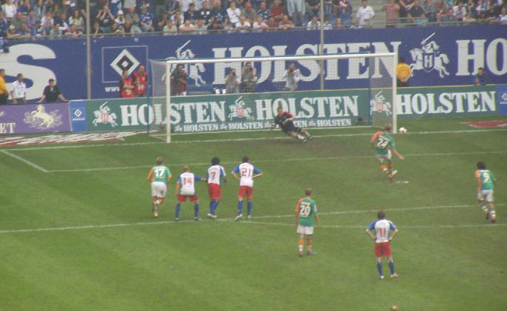 Borowski vergibt die vorzeitige Entscheidung zum 1:3. Der Pfosten war gegen ihn. Na ja, im Pokal gegen Pauli hat er verschossen, da war es nur Recht, dass er auch gegen unseren HSV einen Strafstoß vergibt. |