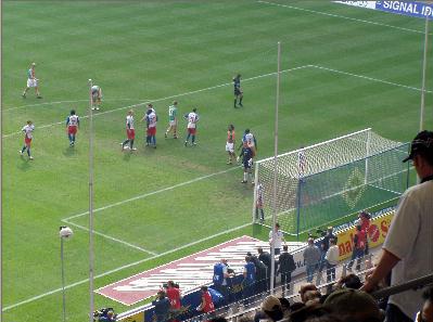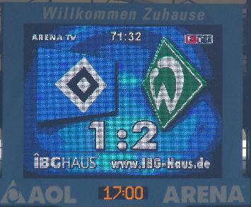Das Endergebnis! War schon deprimierend!! Die Duplizität der Ereignisse. Auch in der letzen Saison lautete das Endergebnis 1:2, auch damals waren die Torschützen für die Gäste Klose und Klasnic. Heute hatte der K+K-Sturm der Bremer die Oberhand gegen die B+B-Abwehr (Boulahrouz und Van Buyton). | ![]() |