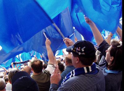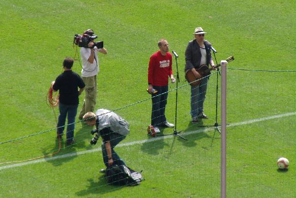 Lotto und Pape heute mal nicht von der Hubbühne aus, sondern vom Spielfeld aus. "Hamburg, mein Perle" haben wir trotzdem alle mitsingen können. |