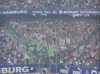 Die Werder-Fans in der Südtribüne. Heute mal ohne provokante Plakate. | ![]() |