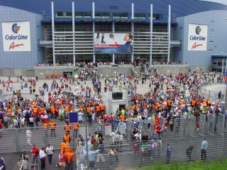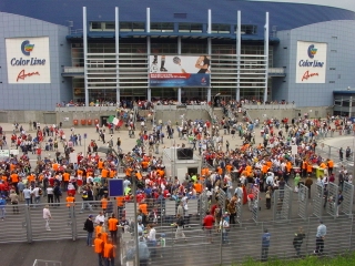Somit traten wir den Weg zum Stadion an, auf dem wir schon zahlreiche italienische und tschechische Fans antrafen. Den ersten Schock bekamen wir, als wir die Preise für das Parken auf den Arenen-Parkplätzen sahen: 6 € !!! (statt sonst 2,50 €). | |