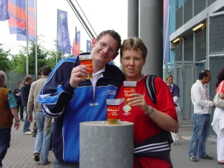 Den zweiten Schock erlebten wir bei den angehobenen Getränkepreise: 4 Euro für ein 0,4 l Bier ist schon ein stolzer Preis ! Aber um ein Fifa-WM2006-Becher mit nach Hause zu nehmen, drückt man beide Augen zu und kauft sich ein Bier. | |