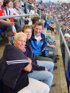 Bei wunderbaren Wetter machten sich am Donnerstag um 12 Uhr 2 Waterkantlerinnen auf den Weg in ihr Stadion, um das Spiel Nr. 41 der WM 2006 live miterleben zu können. Als wir um 13 Uhr (3 Stunden vor Spielbeginn !!!) das Gelände um das Stadion mit dem Auto erreichten, waren unsere „Geheim-Parkplätze“ schon fast alle besetzt. Doch zum Glück hatte ein netter Anwohner noch einen guten Tipp für uns. | |