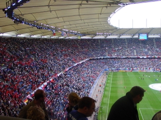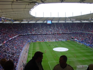 Durch das Zufallsprinzip haben wir in der WM-Kategorie „C“ Karten für den Block 12 C, 12.Reihe erhalten. Nicht gerade die besten Plätze, aber in der AOL-Arena hat man ja von allen Plätzen eine gute Sicht. ;-) |