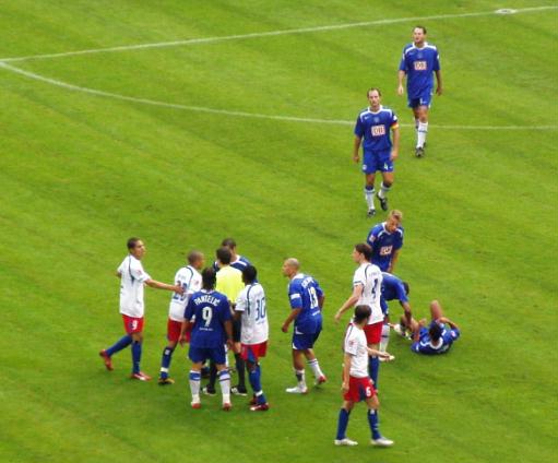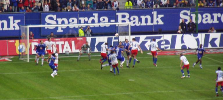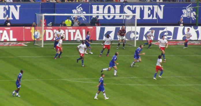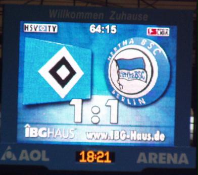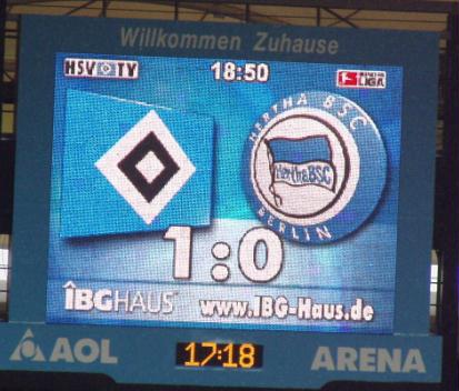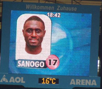 Das Spiel begann vielversprechend. In der 17. Minute gelang Neuzugang Sanogo sein drittes Bundesligator für den HSV. Die fast 54.000 Zuschauer in der AOL-Arena, soweit sie HSV-Fans waren, konnten jubeln. | |