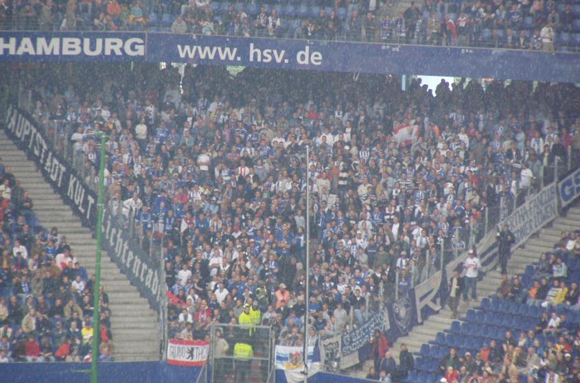 Beim letzten Bundesliga-Aufeinandertreffen beider Mannschaften waren wir mit unsrem Fanclub in Berlin. 2:4 aus HSV-Sicht ging das Spiel im Olympiastadion in Berlin aus. 4 (in Worten vier!) Gegentore so viele wie in keinem Punktspiel der abgelaufenen Saison mussten wir miterleben. Da war also noch einiges für unsere HSVer gut zu machen. Die Rechnung sollte im heutigen Sonntagsspiel wurde aber nicht beglichen. Lotto singt es vor: "Hamburg gegen Hertha, wird für die Hertha immer härter!" Aber es sieht eher danach aus, dass für unseren HSV eine harte Saison bevorsteht. Klare Chancen wurde vergeben und das Glück (Lattentreffer in der ersten Halbzeit) und ein sehr gut aufgelegter Sascha Kirschstein retten den Hamburgern ein 1:1. Aber zum Spiel nachher noch etwas mehr. Vor dem Spiel haben uns an unserem Treffpunkt die Freunde vom HSV Fanclub Rautenzauber besucht. Zum ersten Mal haben wir uns in der letzen Saison beim Auswärtsspiel in Duisburg getroffen. |