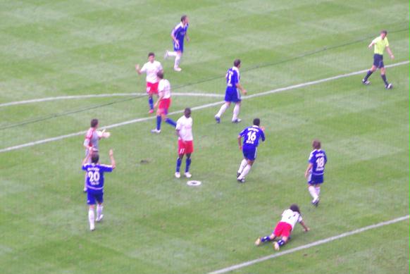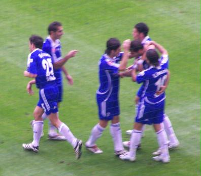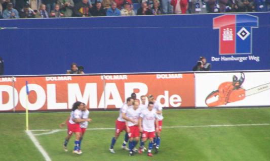 Das Spiel war noch gar nicht so richtig angefangen, da jubelten auch schon - aus unsere Sicht - die falschen. In der 14. Minute schoss H. Altintop zu wenig bedrängt von der neu zusammengesetzten HSV-Abwehr das 1:0. | |
