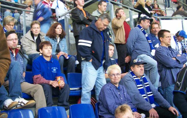 Wir, die Fans, pilgern weiterhin in unser Wohnzimmer, die AOL-Arena zu Hamburg. Auch heute war die Hütte wieder ausverkauft. 57.000 Fans, im gesamten Stadion waren nur schwarz blau weiße Farben zu sehen. Vor dem Spiel wurde der 44.000 Supporter des HSV geehrt. Bei den Fans boomt es - noch! Aber zum Spiel nachher mehr... |