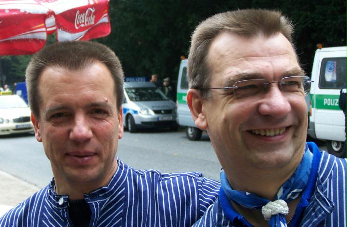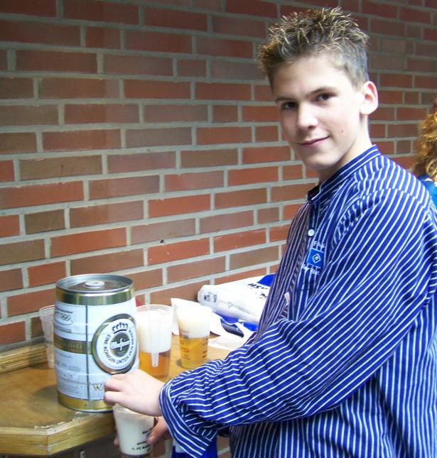 Unten: Unser 1. und unser neuer 2. Vorsitzender in der intensiven Diskusiion um die Höhe des heutigen Sieges. | Oben: Frank mit Nicole (hat er in der U-Bahn aufgegabelt) |