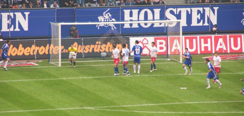Und dann kamen sie, die 10 Minuten, die das Spiel entscheiden sollten. Zwischen der 43. und der 53. Minute hat der HSV das Spiel gegen Schalke 04 verloren. Mit Unterstützung des Schiedsrichters, der - sehr wohlwollend geschrieben - durch seine viel zu häufigen Unterbrechungen, nicht gegebenen Vorteilen für den HSV und zweifelhafte Foulentscheidungen das Spiel zu Gunsten der Knappen entschieden hat. Übrigens: Die Gelb-Rote Karte hat Jarolim zu Recht bekommen. Beide Fouls waren nach den Fernsehbildern das Gelb wert. Aber erst mal ein paar Bilder zur Halbzeitpause: |
