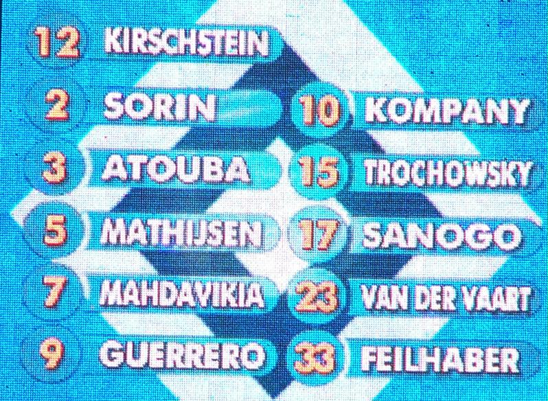 Und ein Blick auf die HSV-Fans. Es war schon Klasse, wie die beiden Fangruppen miteinander in der ersten Halbzeit gesungen haben, bzw. die eigene Mannschaft angefeuert haben. Die "HSV,HSV"-Rufe hallten von Nord nach Süd und von Süd nach Nord. Oder die Hannoveraner fingen mit: "Wer nicht hüpft der ist ein Bremer!" an, was ebenso von den Hamburgern beantwortet wurde. Am, Spiel in der ersten Halbzeit konnte sich ja auch kein der beiden Anhängergruppen erfreuen. Es war schon Not gegen Elend, was sich da auf dem grünen Rasen abspielte. Beide Mannschaften bemühten sich mit Fehlpässen zu überbieten. Das hier waren die "Helden" von heute: |