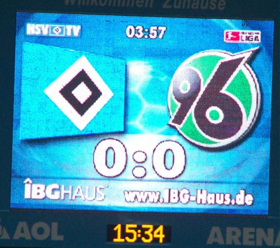 Gleich nach Anpfiff wurde das Spiel vom HSV druckvoller und ein wenig besser. In kurzer Folge vergaben Sanogo, Guerrero, van der Vaart und Kompany hochkarätige Chancen oder am hervorragend aufgelegten Gästetorwart Enke. Zum Ende hin hatten auch die Hannoveraner noch einige sehr gute Möglichkeiten. Untern Strich geht das 0:0 sicher in Ordnung. Aber ein 3:3 hätten allen Fans bestimmt besser gefallen. | |