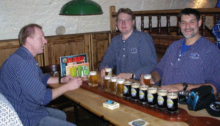 Bevor der Rest der Truppe wieder zu uns in die Brauerei kam, hatten wir uns schon an dem leckeren süffigen Bier gestärkt. | |