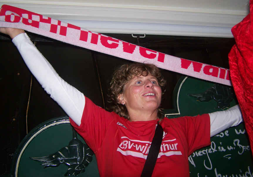 von Mainz 05 getauscht. Im Namen unseres Fanclubs kann ich nur noch einmal "Danke" sagen. Ich weiß nicht, wie viele Bierchen ich ausgegeben bekommen habe und wie häufig wir uns mit Mainzern verbrüdert haben. |