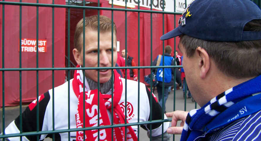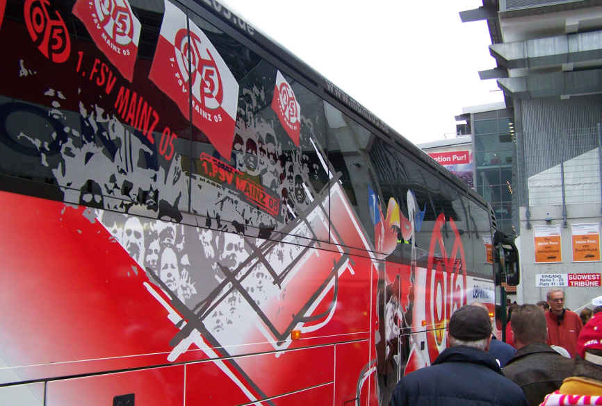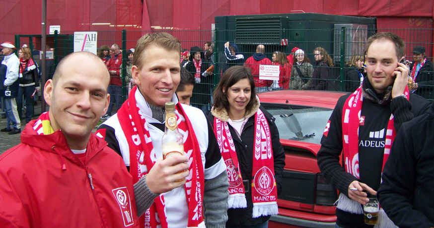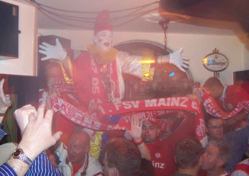 Das ist nicht mehr zu toppen. Dank der Mainzer Fans wurde die Fahrt an diesem Wochenende zu einem absoluten Highlight seit Bestehen unseres Fanclubs. Sonst steht hier auf dieser Homepage zumeist unserer HSV im Mittelpunkt. Heute nicht! Haben die Söldner auch nicht wirklich verdient. Aber das magere 0:0 zwischen Mainz und Hamburg - beide Mannschaft stehen nach diesem Spieltag brüderlich in der Tabelle (17. und 18. Platz) nebeneinander - konnte uns nicht die Laune verderben...