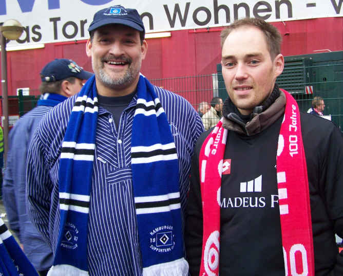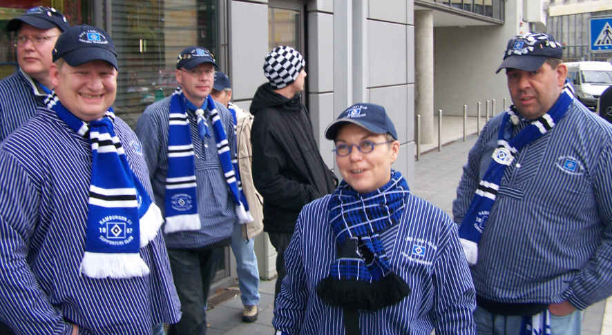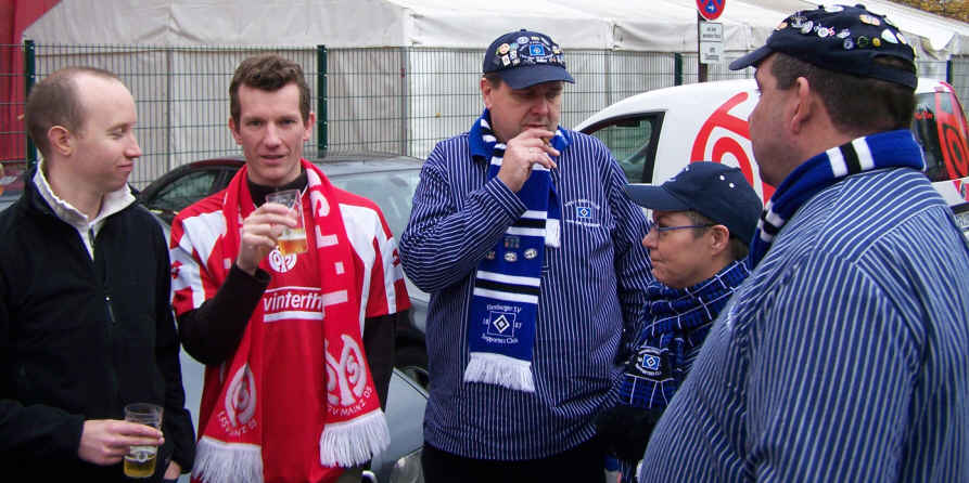 etwas ausgeruhter, die anderen eben etwas weniger ausgeruht. Keiner ist im Mainzer Trubel verloren gegangen. Es war für uns ein toller Einblick in den Karneval hier in das Feiern von Fußball, von dem wir uns noch eine gute Scheibe abschneiden können. Das faire Umgehen mit den Fans der anderen Mannschaft ist absolut vorbildhaft. Haben wir eigentlich auch Fußball geguckt? Ja! Wie war noch gleich das Ergebnis? Ach unwichtig! Wir waren bei Freunden zu Gast, das haben wir erlebt und genossen und das ist auch das einzige was zählt. Ich freu mich jetzt schon auf das Rückspiel der Mainzer am Wochenende 20.-22.04.2007 in Hamburg. |