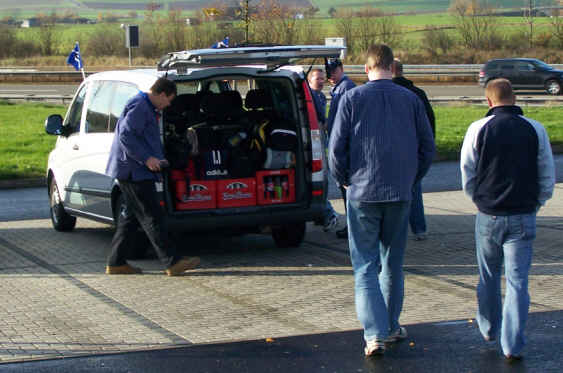 Erste Pause, irgendwo an der A7 kurz vor Göttingen. Noch kein erstes Bier. Wir können auch Kaffee trinken. | |