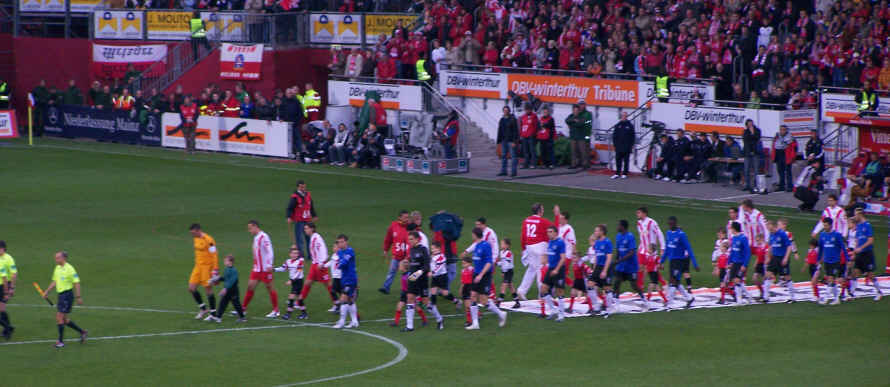 passen würde. Von unsrem Gästebereich konnte man auch etwas bescheiden sehen. Für 27,50 € die Karte haben wir in anderen Stadion schön erheblich besser gesessen. Vor dem Spiel durften die Gästefans ihre Mannschaft ansagen. Das war echt eine tolle Geste. Ohne, dass auch nur ein Mains-Fan negativ dazu geschrieen hat. Das war sehr gastfreundlich und respektvoll. Leider haben einige von unseren HSV-Fans diese Geste nicht begriffen und haben versucht euer Lied: "You`ll never walk alone" mit blöden Zwischenrufen gestört. Entschuldigt bitte, aber dieses Lied ist auch bei unserem in der Regionalliga dümpelnden Stadtteilverein St.Pauli sehr beliebt und da haben einige immer so eine Hasskappe auf. Ich für meinen Teil hatte bei dem Lied eine leichte Gänsehaut... Weiter so, ihr seid einfach erste Klasse-Fans.