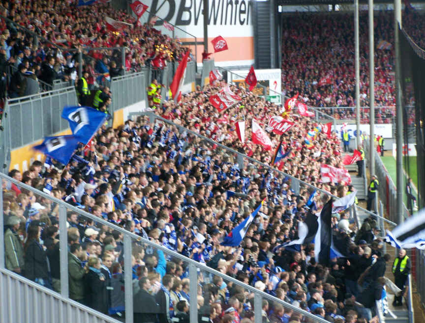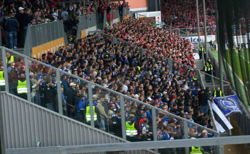 Links, der Gästebereich mit den HSV-Fans, rechts ein