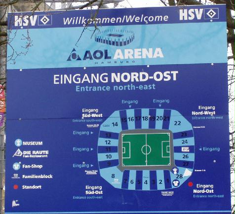 Übrigens ist auch schon wieder der Name AOL-Arena demnächst Geschichte. Ab 01.07.2007 heißt es dann Anstoß in der HSH Nordbank Arena. Da bleibe ich doch lieber beim "Volkspark".