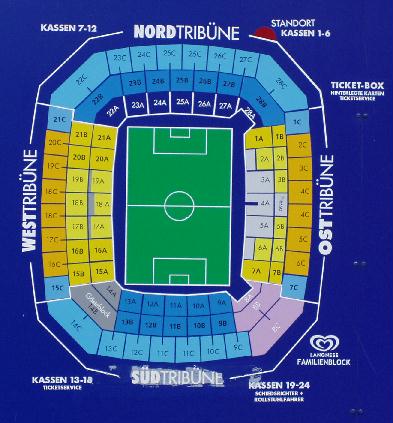 Zuschauerkapazität | 55.989 Zuschauer (seit Erweiterung der Stehplätze im April 2006 maximal 57.000 Zuschauer) |