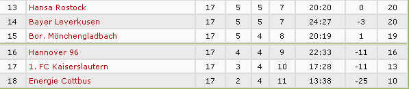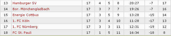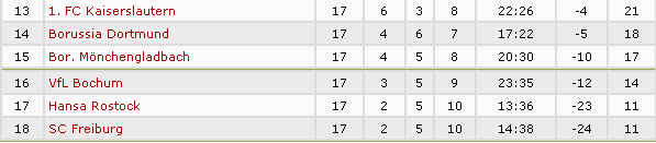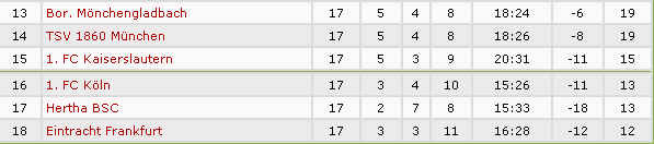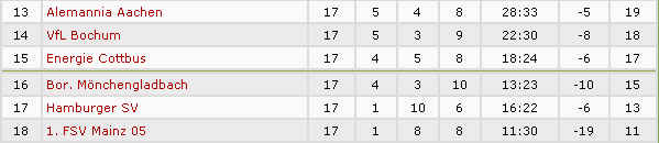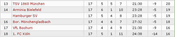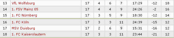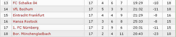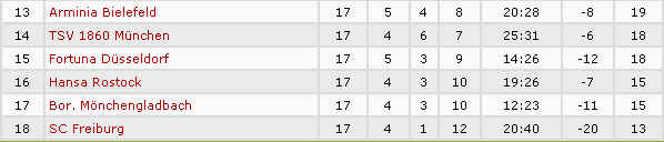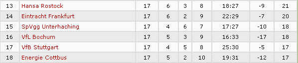 die letzten der Tabelle am 17. Spieltag im Laufe der Rückrunde zu entwickelt