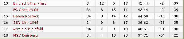 Ich erwarte für die Rückrunde nur eines : Abstiegskampf pur, keine Schönspielerei, das können wir in der nächsten Saison wieder machen, und am Ende der Saison genügend Punkte auf dem Konto, um mindestens auf Platz 15 zu stehen. Alles andere zählt nicht !! Mit freundlichen Grüßen Wolfgang Hohage