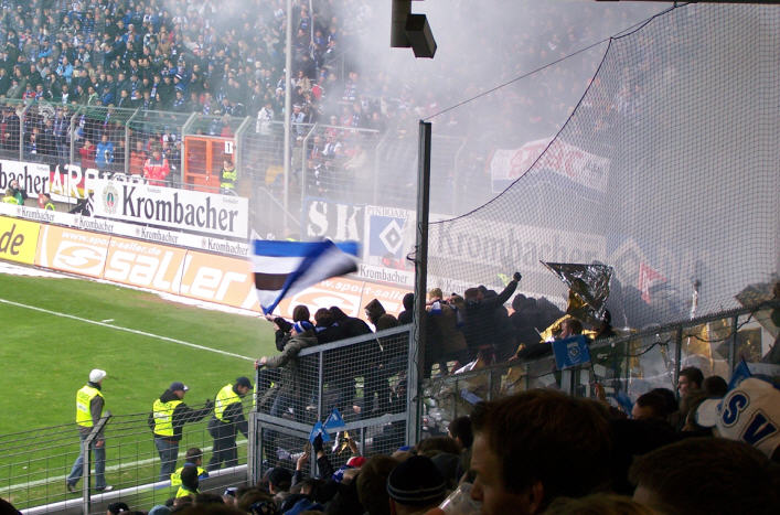 Einige Unverbesserliche aus dem HSV-Fanblock mussten mit Rauchbomben und Sylvesterknallern auf sich aufmerksam machen. Schon schade, wenn man sich nicht anders artikulieren kann, aber die Idioten sterben halt nie aus... So etwas gehört einfach nicht ins Stadion - auch wenn die Eingangskontrollen in Bielefeld ein Farce waren.