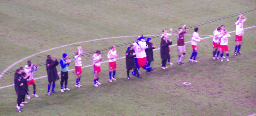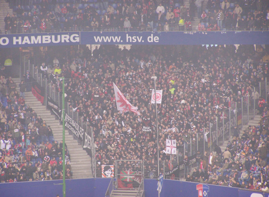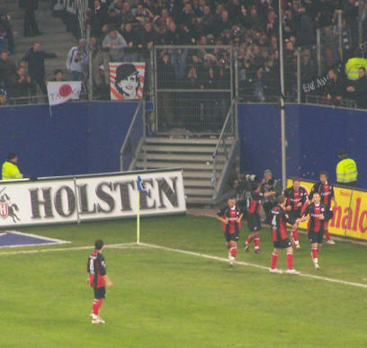 Dann wurde es noch einmal kurz hektisch. Die Frankfurter warfen alles nach vorne und hatten noch eine große Chance zum Ausgleich. Mit dem Schlusspfiff erzielte Olic noch seinen ersten Treffer für den HSV. 3:1 gewonnen und nur noch Jubel bei der Mannschaft und den Fans!!! |