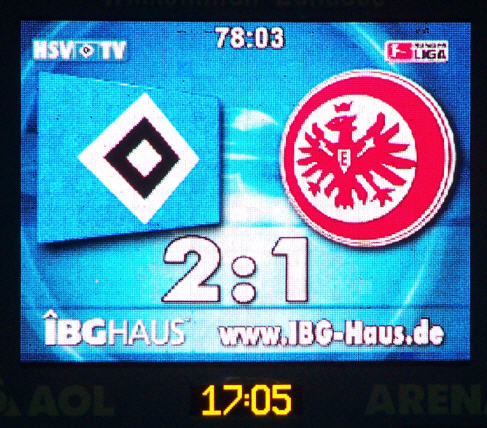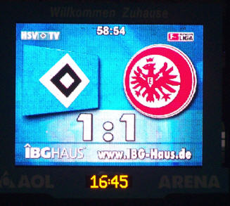 Die Halbzeitführung geht in Ordnung. Mit einem verdienten 1:0 ging es zum Halbzeittee. Nach der Halbzeit sah es etwas anders aus. Die Frankfurter kamen besser in Tritt und durch ´den Ex-Hamburger Takahara, der auch sein 8. Saisontor erzielte, konnten sie verdient in der 59. Minute ausgleichen | |