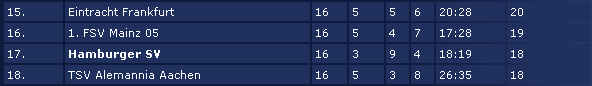 ![]() Es muss dringend in spielerische Kreativität im Mittelfeld und Durchschlagskraft im Angriff investiert werden, um diese miese Heimbilanz (siehe oben den Auszug der Heimtabelle) deutlich zu verbessern! |