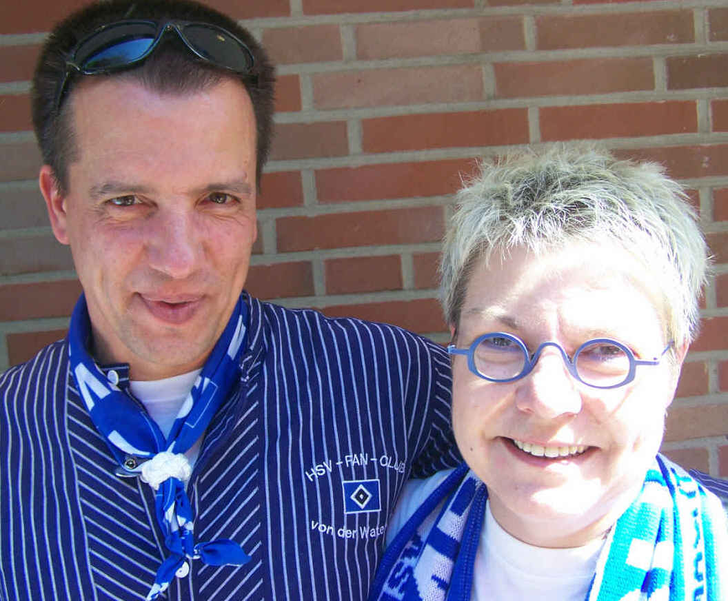 ![]() Unten unsere beiden Waterkantler mit der weitesten Anreise. Beide kommen zwar auch aus Städten mit Bundesligavereinen aber ihr Herz schlägt für den HSV. Michael aus Berlin und Regina aus Bierfeld. |