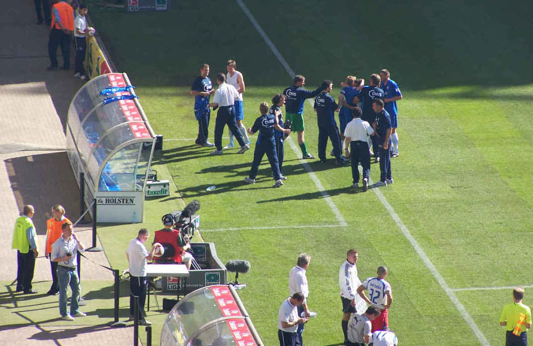 ![]() Die einen feiern und unser Trainer Huub Stevens macht sich schon mal einen Zettel was im Training in dieser Woche vorrangig dran ist... |