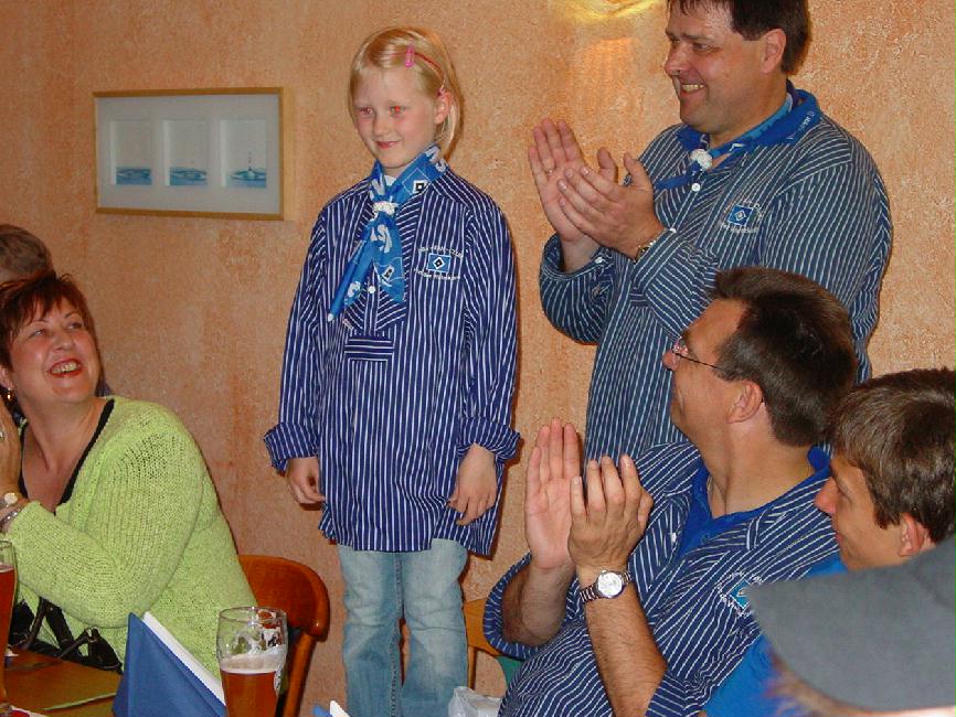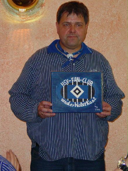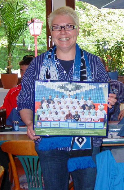 Wie üblich wurden besondere Leistungen für den Fanclub ausgezeichnet. Andreas als klasse Webmaster; Kevin, der das Amt mit dem Geburtstagskarten schreiben während der letzten Saison übernommen hat; und Regina, der keine Mühe zu viel ist, unseren HSV sowohl zu Hause als auch auswärts zu sehen. |
