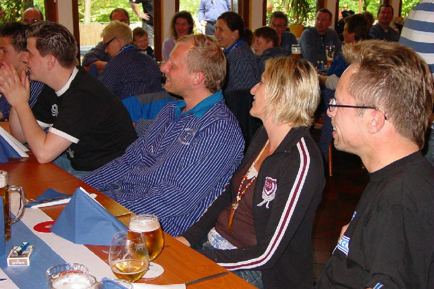 Die Stimmung auf unserer Saison-Abschlussfeier mit über 30 Mitgliedern und Gästen nach dem tollen 4:0 Sieg gegen Aachen war deshalb auch besser als nach der letzten Saison, als wir am Ende den 2. Platz an Werder verloren haben. |