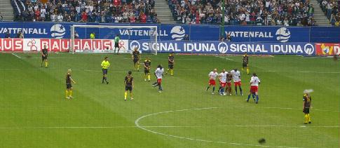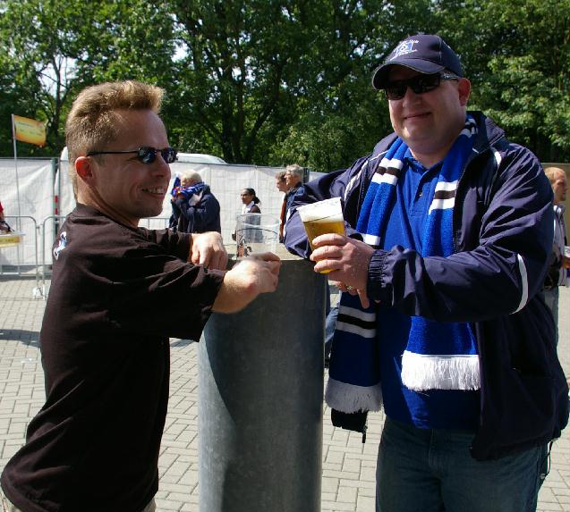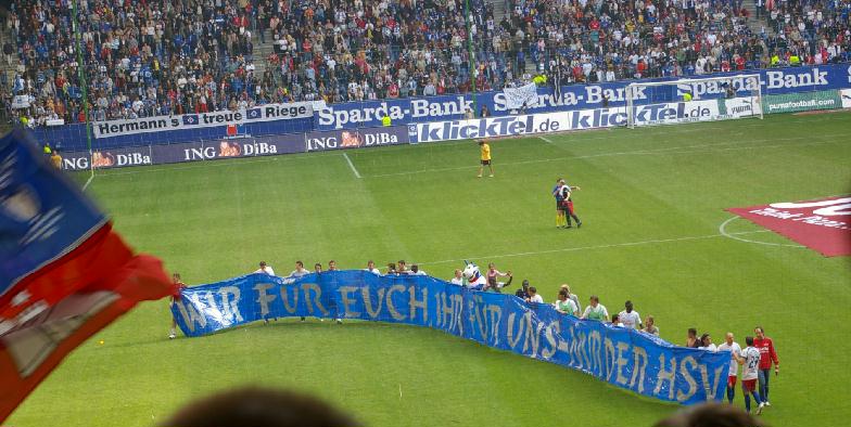2 Worte zu den Aachener Fans: EINFACH KLASSE! Obwohl die Mannschaft schon vorher abgestiegen waren, kamen einige tausend Fans zum letzten Spiel nach Hamburg, feuerten ihre Mannschaft vor, während und nach dem Spiel an und feierten ihre Spieler und machten sogar bei der La Ola-Welle kräftig mit.