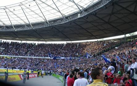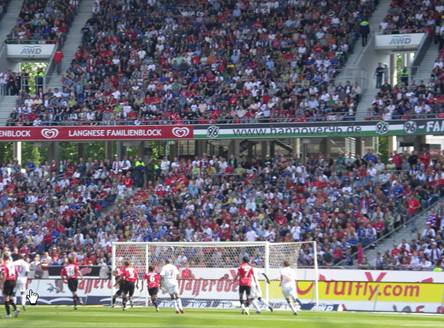 Das Spiel selber habt Ihr sicherlich alle in der Sportschau gesehen… es begann von beiden Mannschaften aus recht verhalten, wobei der HSV immer mehr ins Spiel kam. Dann in der 25. Minute der „Lattenschuß“, von einem erstmalig eingesetzten Linienrichter korrekt als Tor angesehen da der Ball hinter der Torlinie aufgeschlagen war. Super gesehen, Glückwunsch. In der 2. Halbzeit kam Hannover kurzfristig besser ins Spiel und versuchte minutenlang vergebens das Hamburger Tor zu stürmen. |