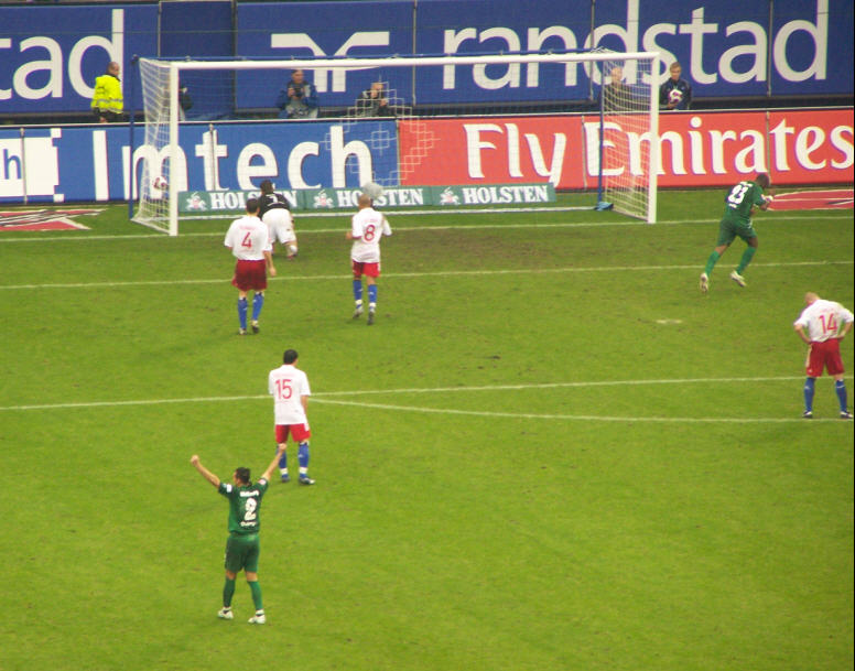Aber Hamburg will gewinnen und feiern; in der 17. Minute schießt Bastian Reinhard das erlösende 1:0. Nach einer Korrektur in der Ansage, man nannte Joel Matheisen anfangs als Torschützen, durfte sich Reinhard ein dreifaches BASTIAN REINHARD!!! anhören. Der ärmste, schießt mal mit Erfolg in das richtige Tor und niemand sieht es. Okay, die Korrektur kam ja recht zügig. Wolfsburg lässt sich davon wenig beeindrucken und versemmelt dem HSV dank seines gut agierenden Torwartes reichlich Tormöglichkeiten oder/und liegt es gar an unserer Sturmspitze? Die, ja, wo ist die eigentlich? Ach ja, in der 70. Minute stockte diese Sturmspitze namens Rafael van der Vaart mit einem super Freistoß aus dem Mittelfeld zum 2:1 auf. Jo, richtig gelesen, die Gäste hatten zwischenzeitlich dank eines Elfmeters zum 1:1 ausgeglichen. Manchmal bettelt Hamburg regelrecht um Gegentore. Jedenfalls bin ich gegen 17:00 Uhr recht zufrieden aus dem Stadion gegangen, der Zug nach Berlin wartete und Hamburg führte, das Tor sogar noch gesehen…super Nachmittag. Denkste, schon in der S-Bahn ereilte mich die Info das die Wolfsburger kurz vor Schluß zum 2:2 ausgeglichen hatten. Es hätte so schön sein können mit dem Tabellenplatz, so eine magische 3…okay, sollte nicht sein, sehen eine 10 und hoffen auf den Rest der Saison. Mit uns als 12. Mann wird es was werden, ja, wird es. Ob die heutige Feier beim HSV deswegen kleiner ausfiel, wage ich zu bezweifeln. Was soll ich sagen, fahre nach Berlin, komme dort an, und? Es regnet… |