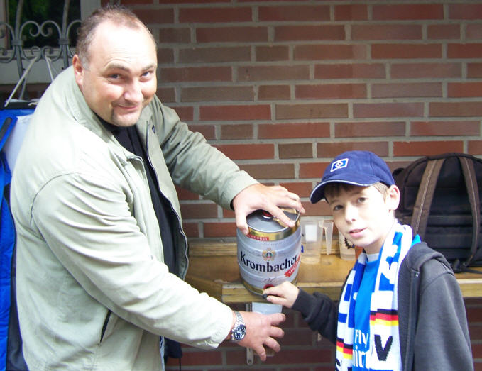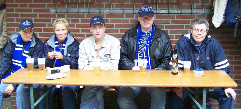 09:20 Uhr in Bielefeld, es regnet, umsteigen 1 Stunde später in Hannover, es regnet. Ankunft in Hamburg um 13:00 Uhr, ES REGNET!!! Also absolut normales Fußballwetter für den HSV und seine Fans. Was kann da noch passieren. Optimismus am Treffpunkt nach dem sagenhaften Spiel des HSV gegen die Borussia Dortmund. Irre, so geht es bestimmt weiter, denken wir, hoffen wir, wünschen wir. Die Stimmung am Picknick ist entspannt und gelöst, bei teilweise heftigem Regen natürlich, man trinkt und isst, selbst unser ehemalige Koch merkte an das er Tim Mälzer die Prüfung abgenommen habe und kommentierte trocken „der ist jetzt Millonär und ich Altenpfleger“. Ist da wohl was schief gelaufen? Nein, ist es nicht, es es kommt eh wie es kommen soll und das ist gut so. Nicht wahr Andreas? Als Millionär würdest Du bestimmt nicht zu unserem Picknick kommen und das wäre sehr schade. |